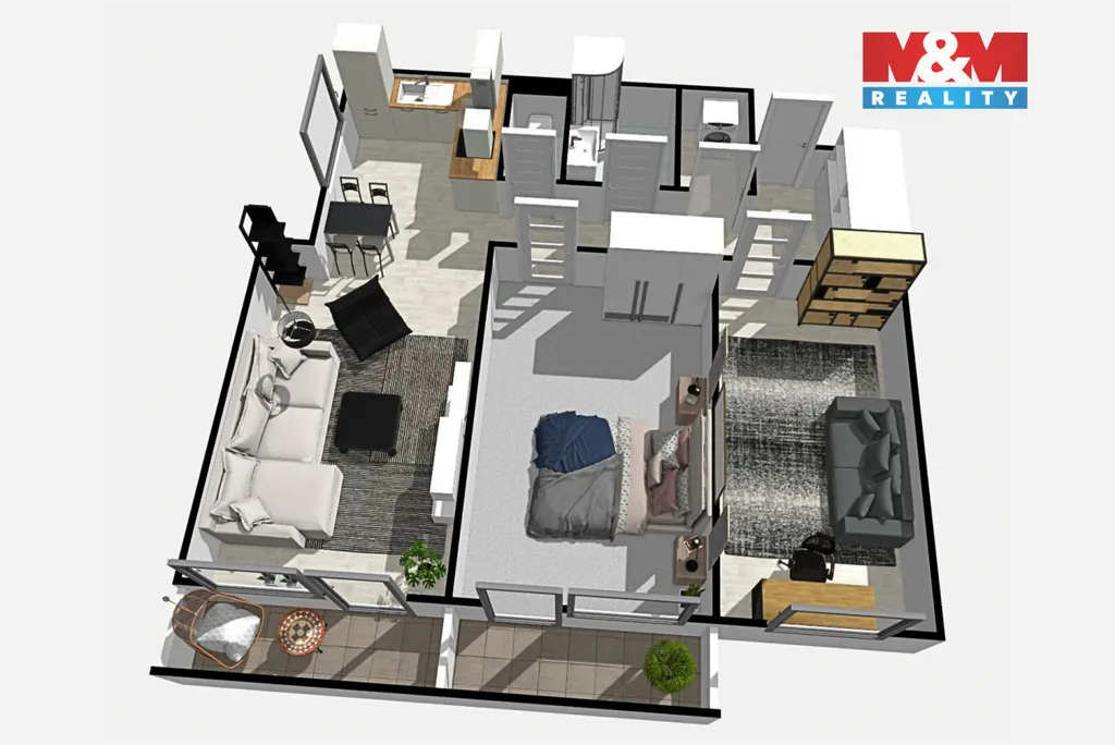 Samotný byt prošel rekonstrukcí v roce 2019 a nabízí moderní, útulné a praktické bydlení. Velkou předností jsou dva prosklené balkony, které byt krásně prosvětlují a poskytují nádherný výhled na Podměstský rybník – ideální místo pro ranní kávu i večerní relax.