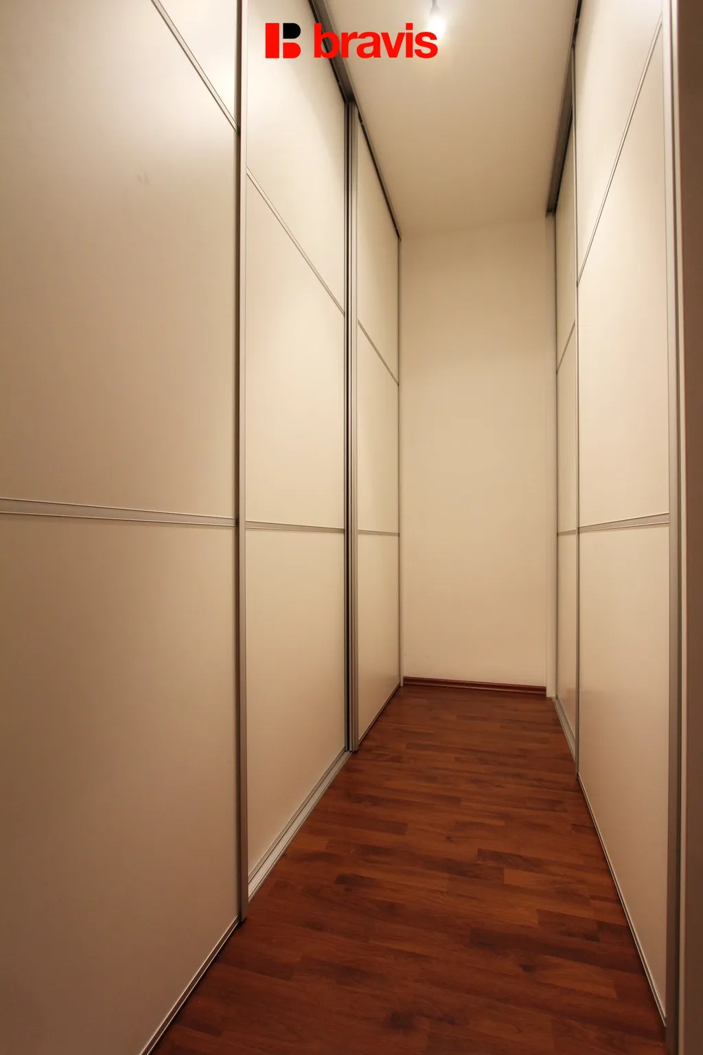 Samostatná ložnice poskytuje dostatek soukromí a díky samostatnému vstupu je vhodná jak pro mladý pár, tak i pro jednotlivce vyhledávající klidné zázemí. V bytě se nachází rovněž šatna s vestavěnými skříněmi, která nabízí opravdu velkorysé množství úložného prostoru.