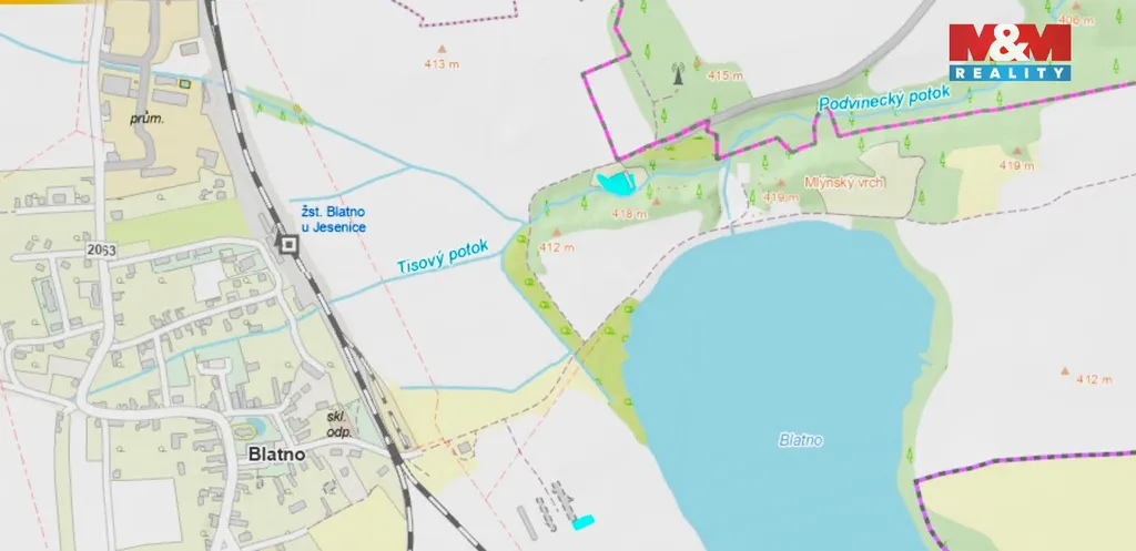 Prodej pozemků o výměře 107344 m2 na okraji obce Blatno. Pozemky s dobrou bonitou tvoří jeden celek. V blízkosti pozemků je vodní plocha cca 18 ha, hrady Křivoklát, Rabštejn, Chýše. Součástí prodeje je polovina domu-bývalý mlýn, stodola a garáž s okrasnou zahradou, kterou protéká potok. Objekt je vhodný k rekreaci i na bydlení a podnikání, leží v atraktivní lokalitě s absolutním soukromím. Nemovitost je vhodná také jako investice, možno vybudovat ranč, dětský tábor, biofarmu, agroturistiku, rekreační sídlo apod. Dobrá dostupnost do Prahy a Karlových Varů. Podrobné info u makléře.
