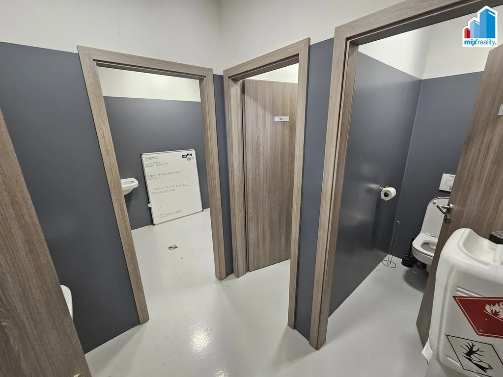 Prostory o celkové výměře 893 m2 jsou vybaveny kanceláří, šatnou, sociálním zařízením a dvěma vraty o výšce 4 m.