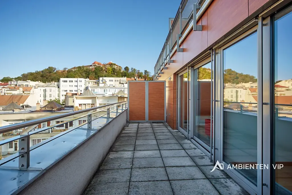 Prostorný byt o celkové ploše 55 m2 s terasou o velikosti 15,8 m2 se nachází v 6. patře moderní budovy s výtahem. Byt je po citlivé rekonstrukci a disponuje spacím koutem/pracovnou, ložnicí, dále prostorným kuchyňským koutem s obývacím prostorem, z kterého je přímý vstup na terasou orientovanou na jih. Všechny pokoje jsou vybaveny nábytkem. Nájemník se tak může nastěhovat pouze s osobními věcmi a může ihned bydlet.