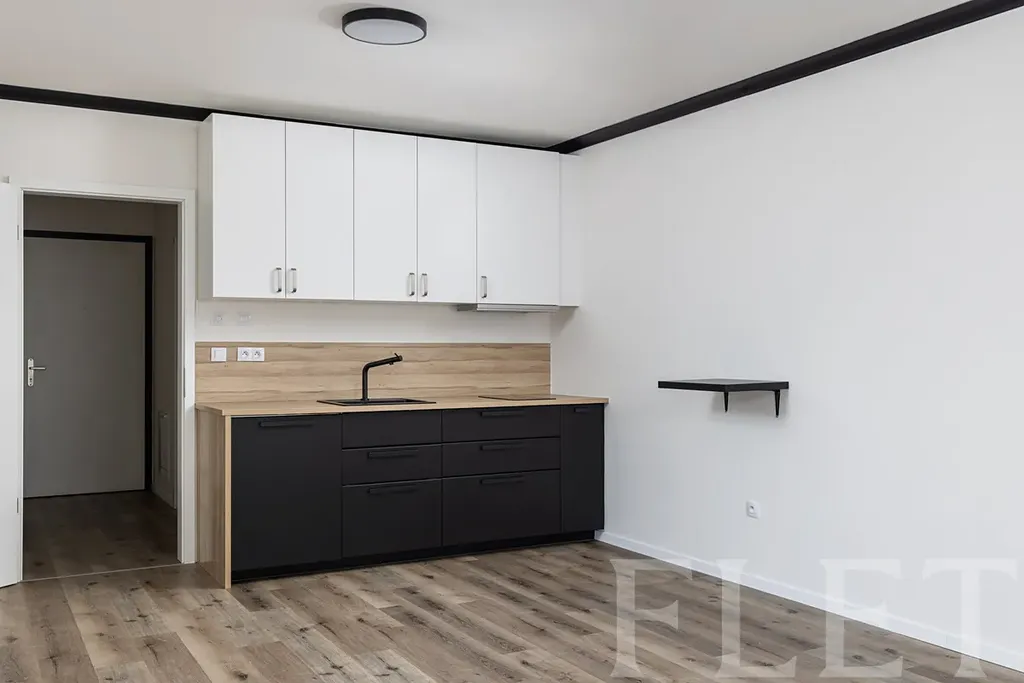 Interiér bytu působí vzdušně a elegantně. Prakticky řešený úložný prostor v předsíni přispívá k celkovému komfortu bydlení. Kuchyňský kout je vybaven moderní kuchyňskou linkou se spotřebiči – lednicí s mrazákem, myčkou a varnou deskou. V koupelně se nachází sprchový kout s toaletou, k dispozici je také pračka. Pračka a lednice budou v bytě k dispozici, ačkoliv nejsou zachyceny na fotografiích.
