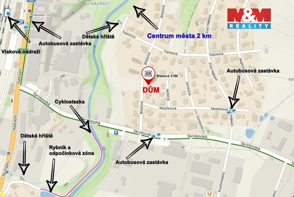Nabízíme k pronájmu plně vybavený rodinný dům o užitné ploše 273 m² s pozemkem o velikosti 741 m² a venkovním krytým bazénem. Dům má praktickou dispozici: v přízemí se nachází prostorný obývací pokoj, jídelna se vstupem na terasu, kuchyně, menší koupelna, vstupní hala a garáž. V patře je velká hala, tři ložnice a prostorná koupelna. Zahrada nabízí možnost odpočinku i vlastní realizace. Majitelé preferují zájemce, kteří se o dům a zahradu dobře postarají. Nemovitost se nachází v klidné lokalitě s výbornou dostupností – centrum Pelhřimova s kompletní občanskou vybaveností je vzdálené pouhých 5 minut. V okolí je dětské hřiště, odpočinková zóna s rybníkem, cyklostezka a dobré spojení autobusem i vlakem. Ideální bydlení pro větší rodinu. Nájemné činí 30.000 Kč měsíčně + poplatky, elektřinu a plyn si nájemce převádí na sebe. Kauce 70.000 Kč, provize RK 36.300 Kč. Pro více informací nás neváhejte kontaktovat.