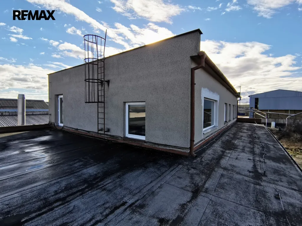 1x místnost 54 m2 s přístupem na střechu (možná terasa nebo přístavba 300 m2)