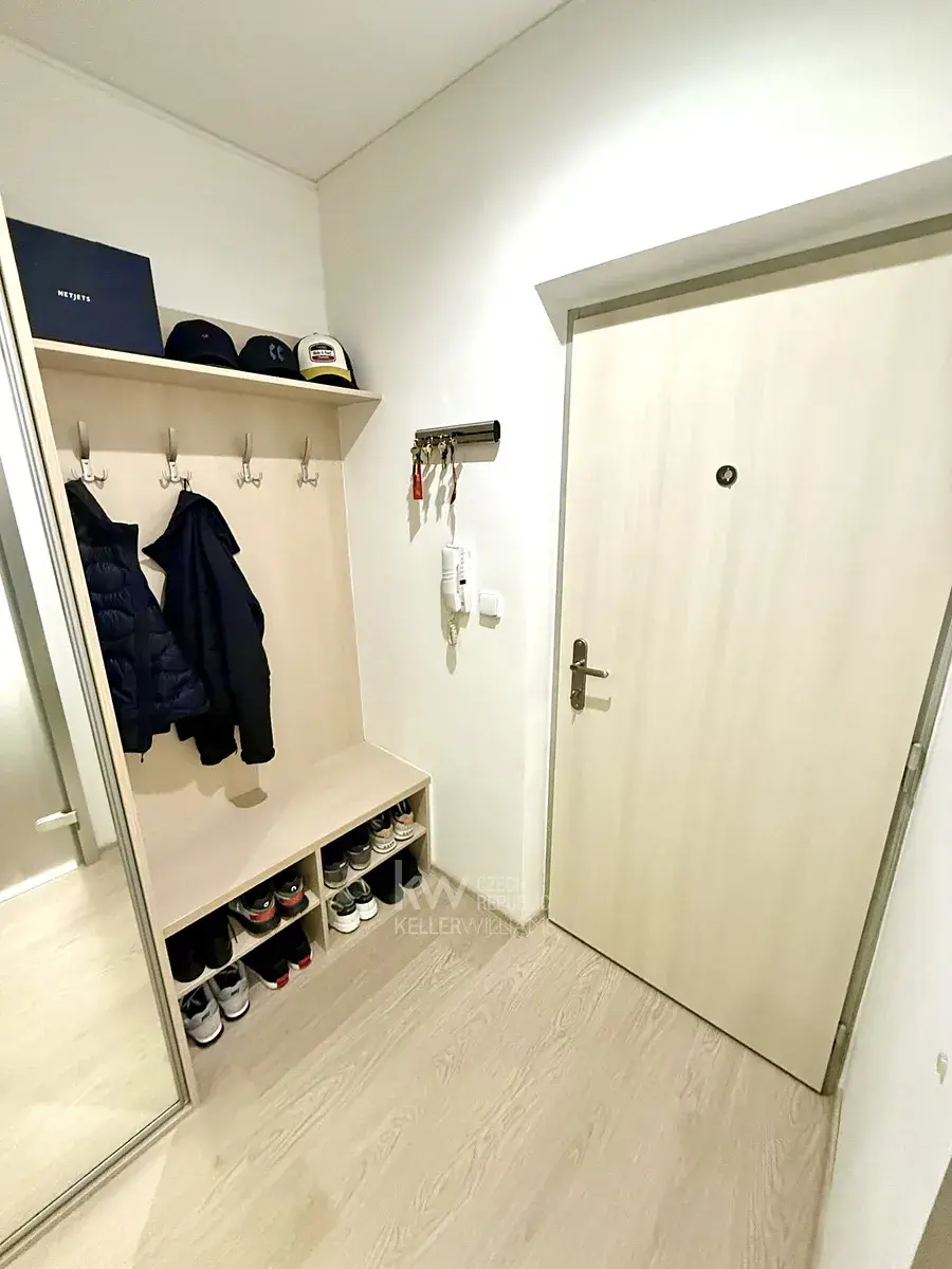 Byt je promyšlený tak, aby dával smysl v běžném dni: kuchyňský kout navazuje na obytný prostor, ložnice drží potřebný klid a severo-jižní orientace přináší přirozené větrání napříč bytem. Praktickým bonusem je lodžie umístěná „napůl v mezipatře“, což je ideální na sušení prádla nebo případně ranní kávu. Pro práci z domova potěší optika přímo v bytě.