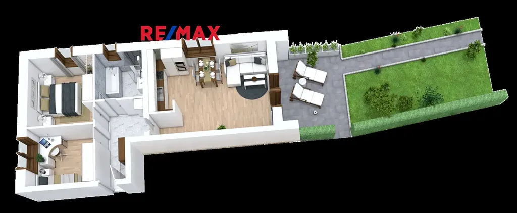 Byty disponují velkorysými terasami pro relaxaci, zatímco přízemní byty, jako je tento byt č.3, nabízejí vlastní zahrádky – ideální pro rodiny s dětmi nebo milovníky grilování.