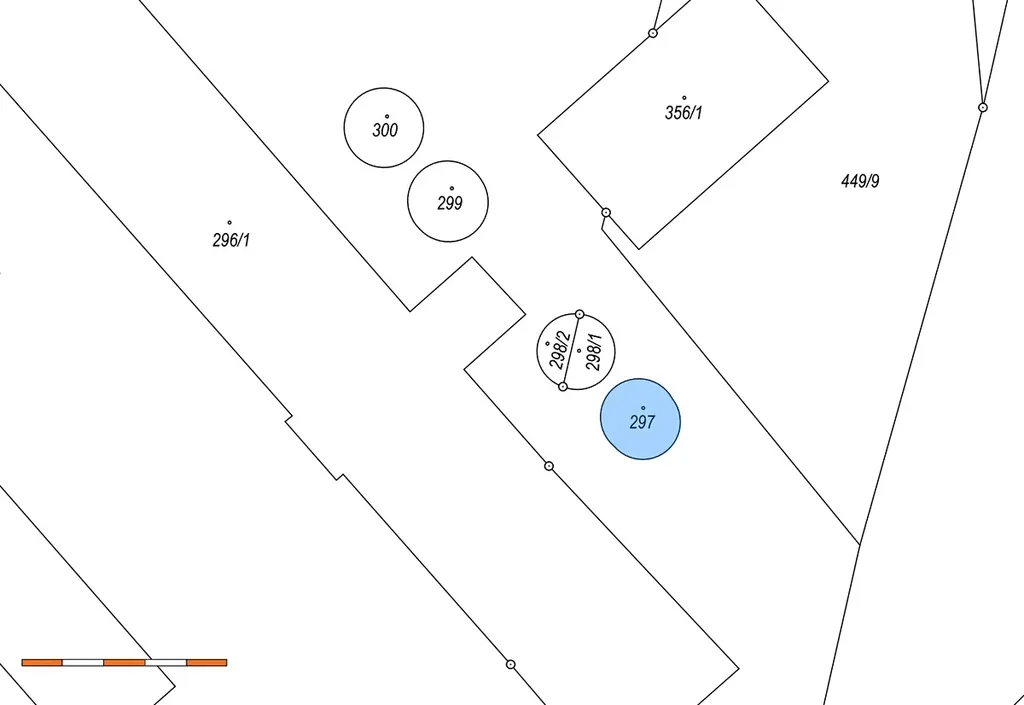 Jedná se o pozemek jiného vlastníka parc. č. St. 297 – Česká republika, Státní pozemkový úřad, Husinecká 1024/11a, Žižkov, 13000 Praha 3 (není předmětem dražby), který je zcela zastavěn zemědělskou stavbou bez čp/če. Dle platného územního plánu je umístěn ve stabilizované ploše VS – plochy smíšené výrobní.