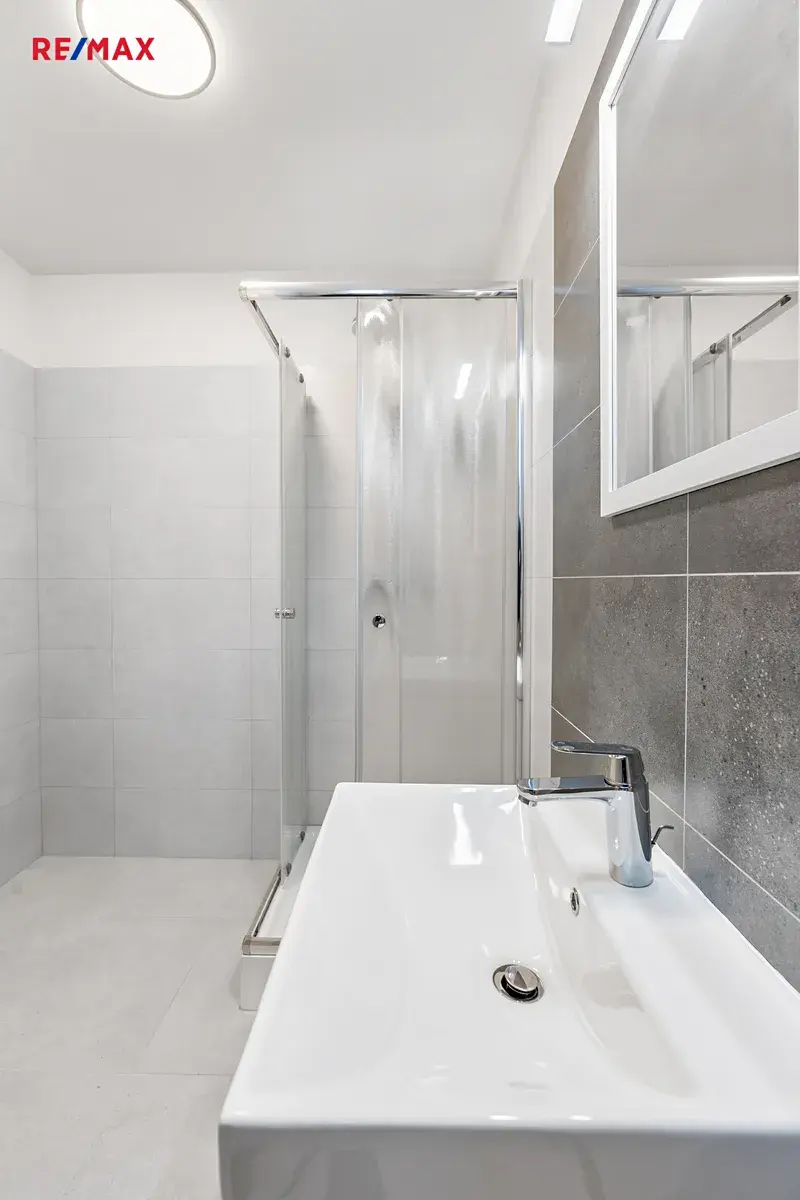 Byt působí velmi světlým a vzdušným dojmem. Promyšlené řešení prostoru nabízí pohodlné bydlení pro jednotlivce či pár.