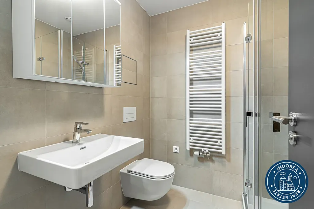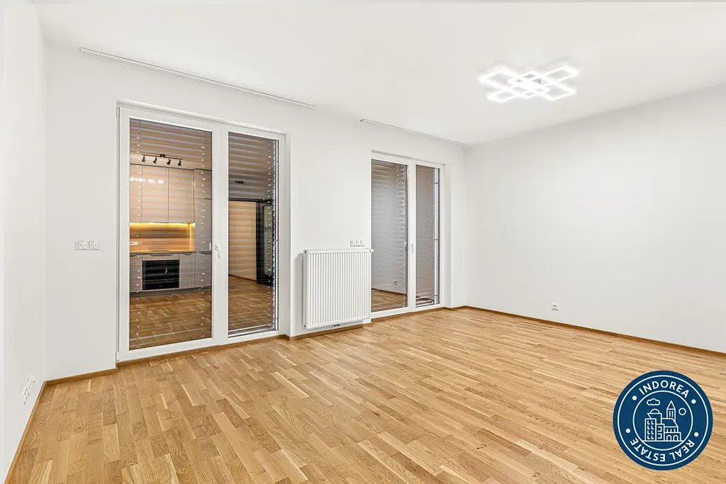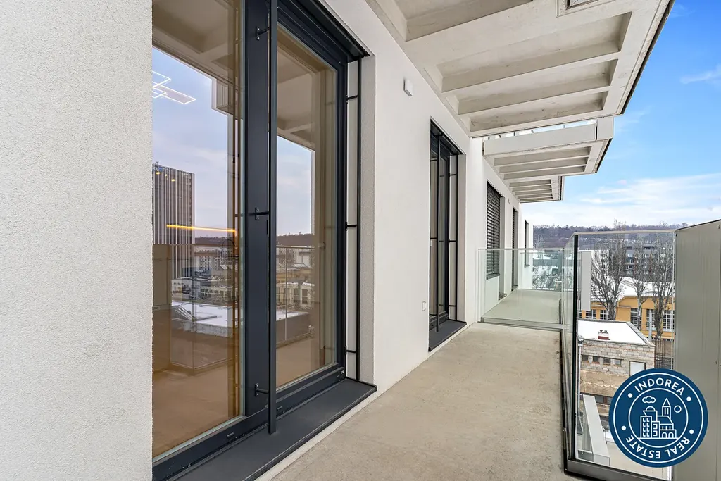 Byt je situován v lepším sedmém patře novostavby. Čtvrť Emila Kolbena od společnosti Skanska, která kombinuje komfortní bydlení s inspirativním prostředím.
