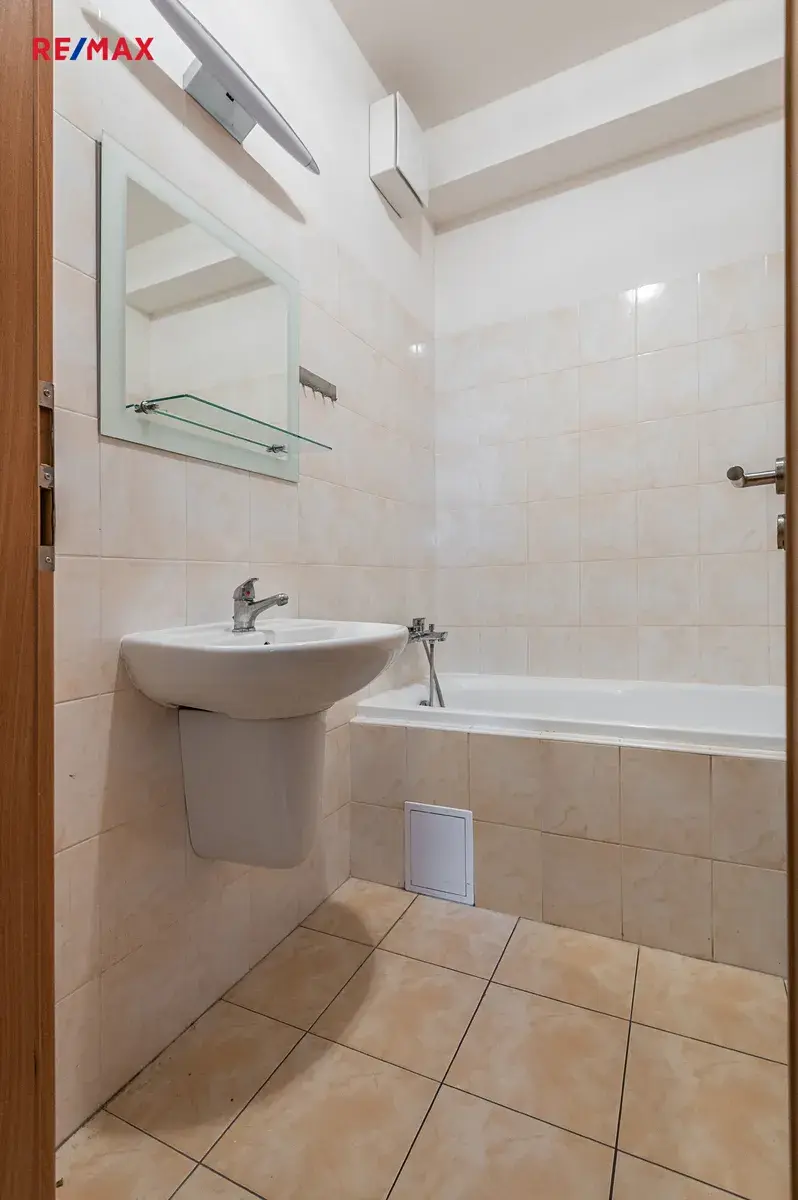 Dispozice zahrnuje obývací pokoj 21,78 m² s kuchyňským koutem 5,33 m², přímý vstup na balkon 6,5 m² z obývacího pokoje i ložnice 17,03 m², který je ideální k relaxaci nebo ranní kávě. Balkon je orientován na JZ. Byt má prostornou chodbu 8, 62 m², koupelnu 3,41 m² s vanou, samostatné WC 1,12 m². K bytu náleží sklepní kóje v suterénu bytového domu.