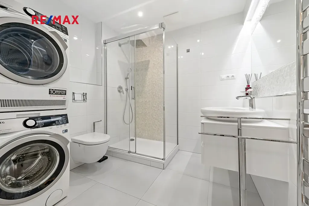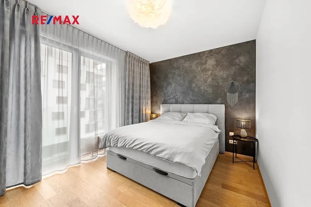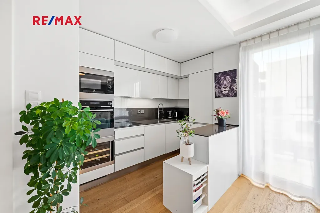Byt je plně zařízen a nabízí vysoký standard: kvalitní kuchyňská linka a designové vybavení, vestavěné skříně a dostatek úložného prostoru, francouzská okna, orientace na jih a západ, zaručující mnoho slunečního svitu, parketová podlaha z přírodního dřeva a moderní velká koupelna se sprchovým koutem. Konstrukce domu je železobetonová, cihlové zdivo, zateplená fasáda, izolační trojskla, výtah, energeticky úsporné řešení.
