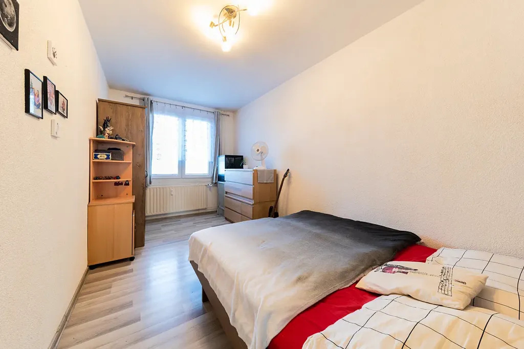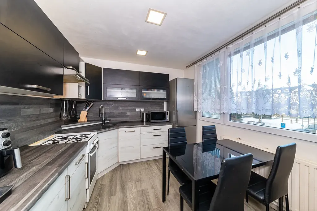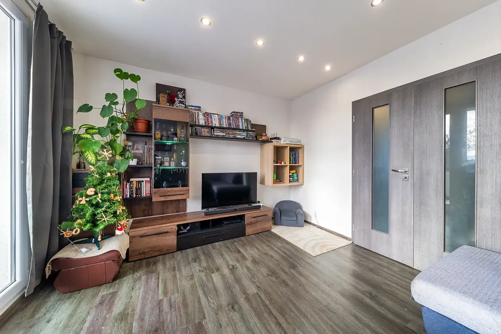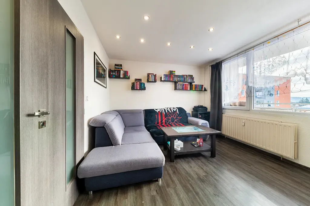 Byt v osobním vlastnictví po celkové rekonstrukci, druhé patro. Podlahová plocha bytu 61,23 m2, plocha sklepa 2 m2, plocha lodžie 6 m2. Dálkové topení, dálkový ohřev vody.