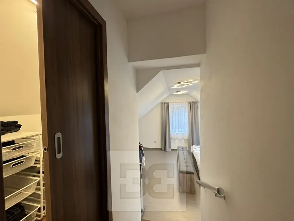 • velmi zajímavě řešená rodičovská ložnice se šatnou, která je částečně oddělena v mezipatře domu