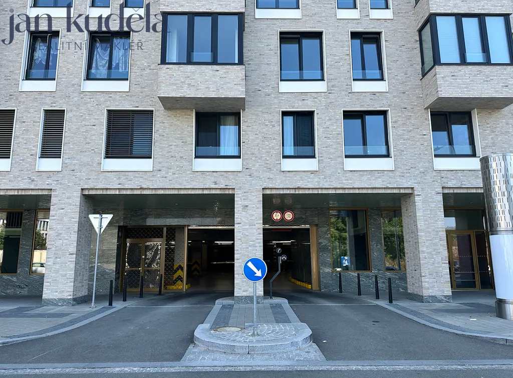 Moderní objekt je vybaven kamerovým systémem a vstup do garáže je zabezpečen pomocí čipu, což přispívá k celkovému zvýšení bezpečnosti.