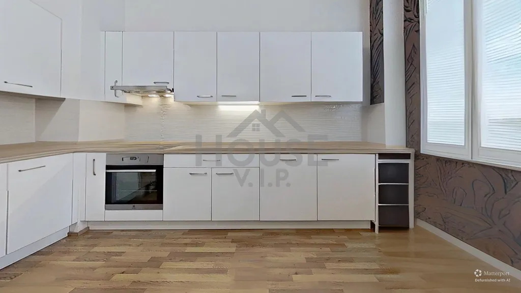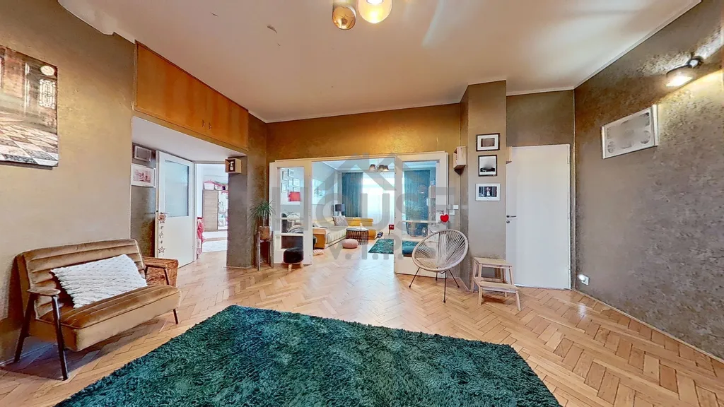 Byt se nachází ve 3. patře domu ze 30. let s výtahem a velkoryse řešenými byty, s vysokými stropy a velkými francouzskými okny, která zajišťují výjimečnou světlost všech obytných místností. Komfort bydlení podtrhují zachovalé dubové parkety ve všech pokojích a na svou dobu převratné stropní vytápění, které zajišťuje rovnoměrné a úsporné teplo bez rušivých radiátorů.