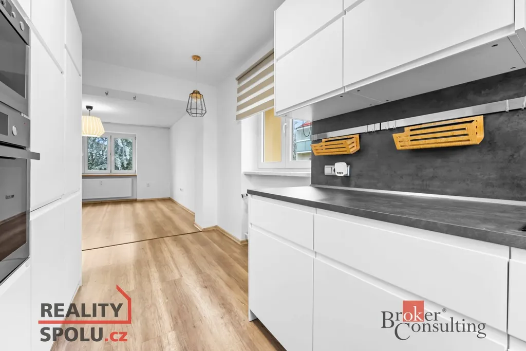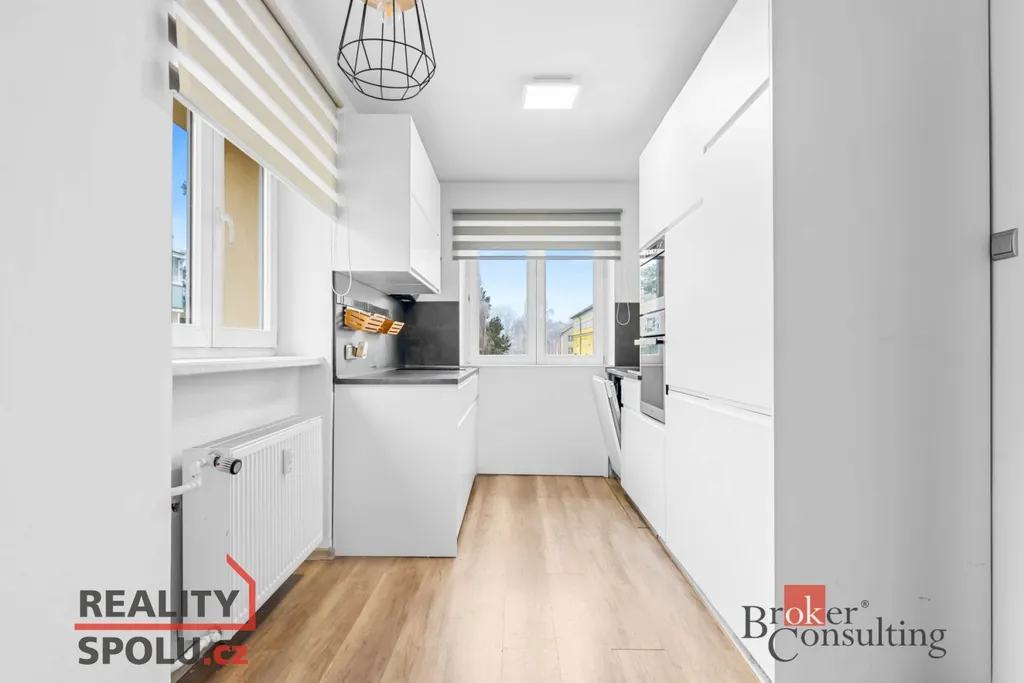 Byt prošel opravami – nové rozvody elektřiny a vody, podlahy, kuchyňská linka včetně vestavěných spotřebičů, koupelna s toaletou i interiérové dveře. Vše je vkusně sladěno do světlých tónů, takže byt působí svěže, prostorně a útulně.