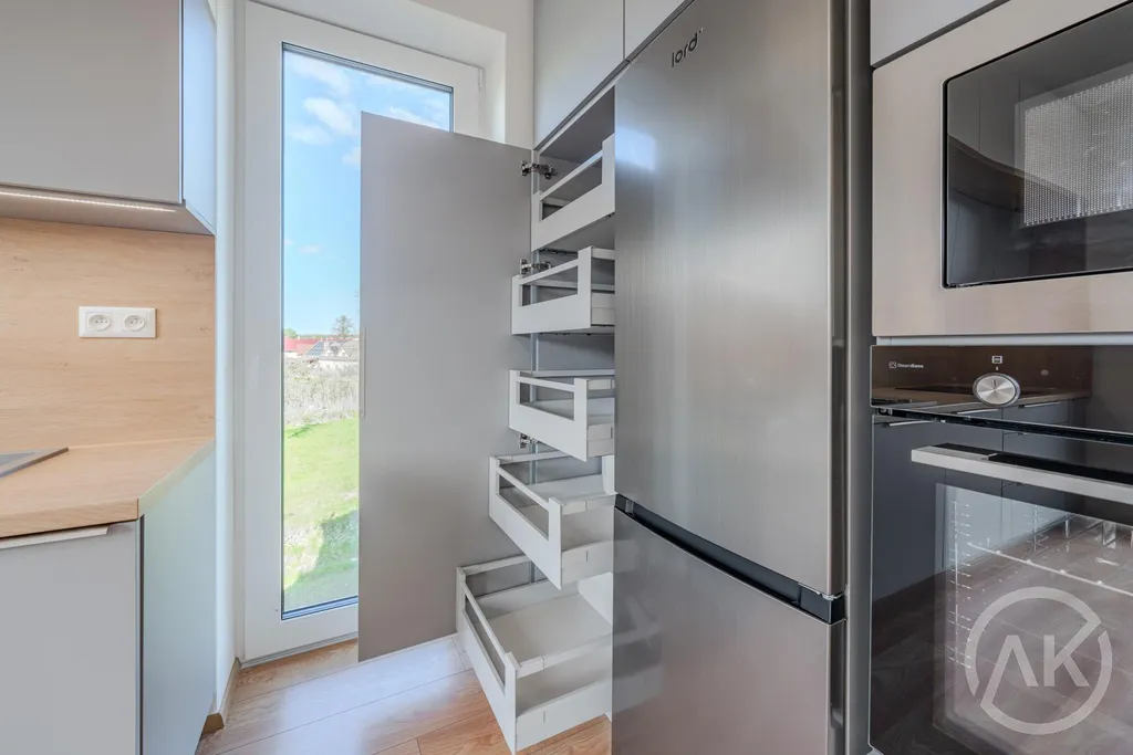 - v bytě je plně vybavená kuchyně, sladěná s ostatními dekory podlah a dveří. Ostatní vybavení už je na vás,