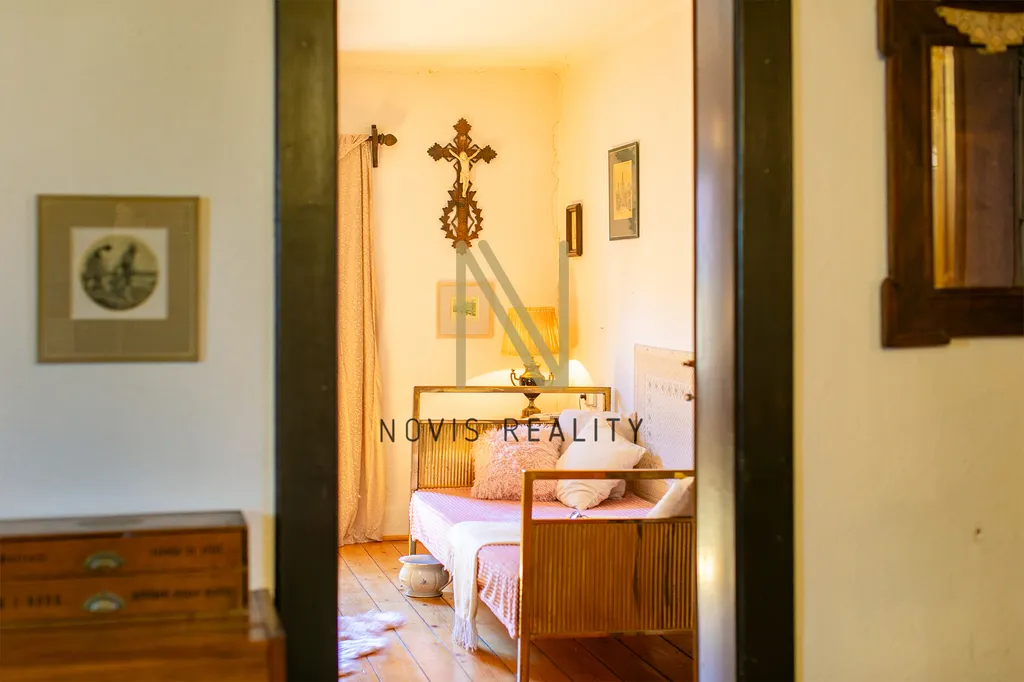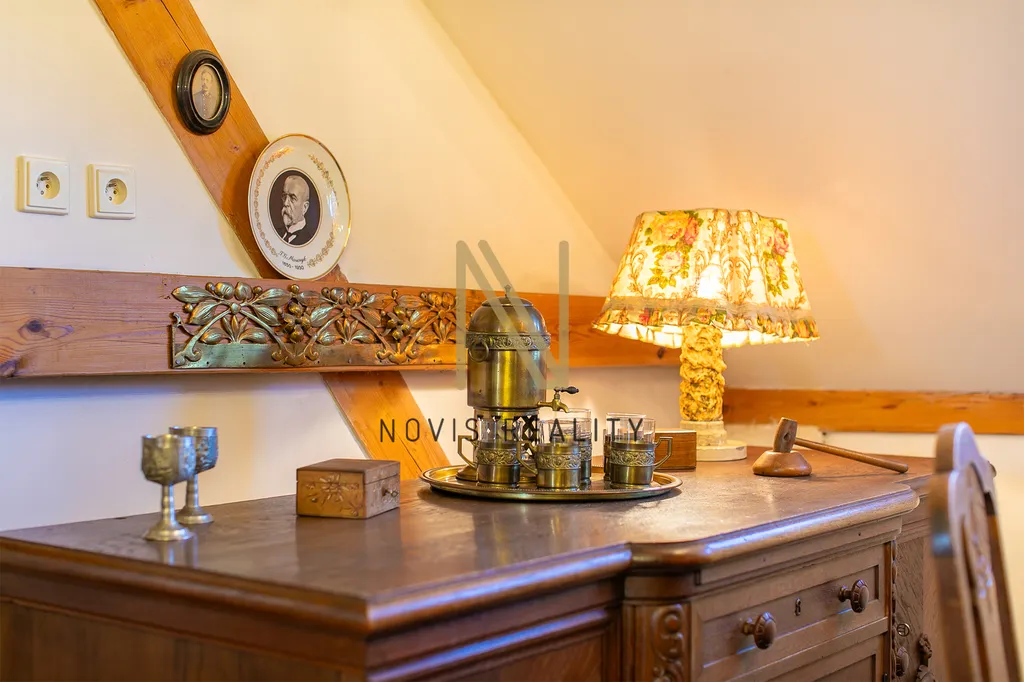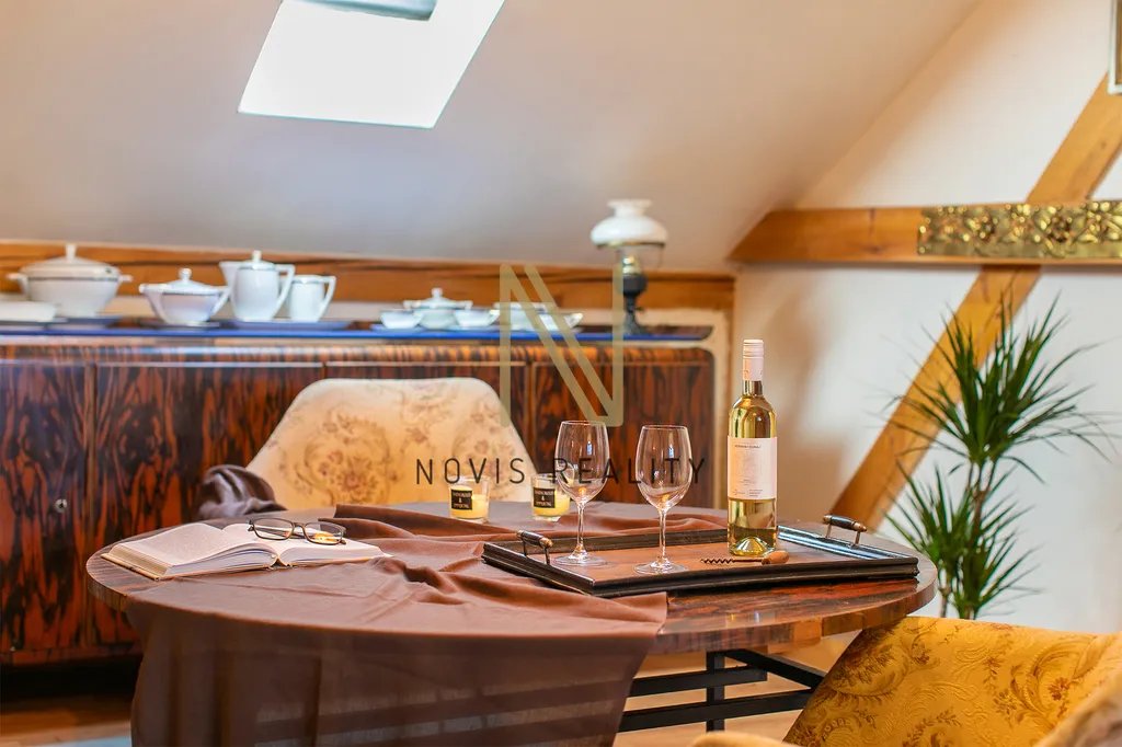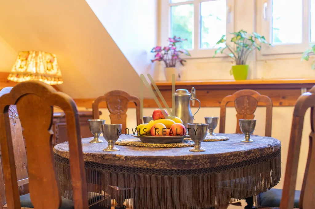 V podkroví je prostorný obývací pokoj, který je ideálním místem pro rodinné setkání a tři pokoje, přičemž jeden z nich disponuje romantickým balkonkem. Dále je zde koupelna se sprchovým koutem, šatna a půdní prostory, které přímo vybízí k vestavbě. K dispozici jsou dva sklepy o velikosti 9 m² a 14 m². Dům je celkově v dobrém stavu a je připraven na to, aby se v něm vytvořil nový domov.