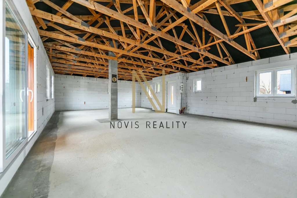 Výhodou je, že si budoucí dispozici můžete nadefinovat podle svých představ. Dům je napojen na veřejný vodovod a kanalizaci. HS portál je spojnicí mezi vnitřním prostorem domu a zastřešenou terasou. Dům má být vybaven tepelným čerpadlem, vytápěn podlahovým topením. V budoucím obývacím pokoji můžete mít krbovou vložku díky již vybudovanému komínu. Okna jsou trojskla a PENB je třídy B, což Vám zaručí úsporný provoz domu.
