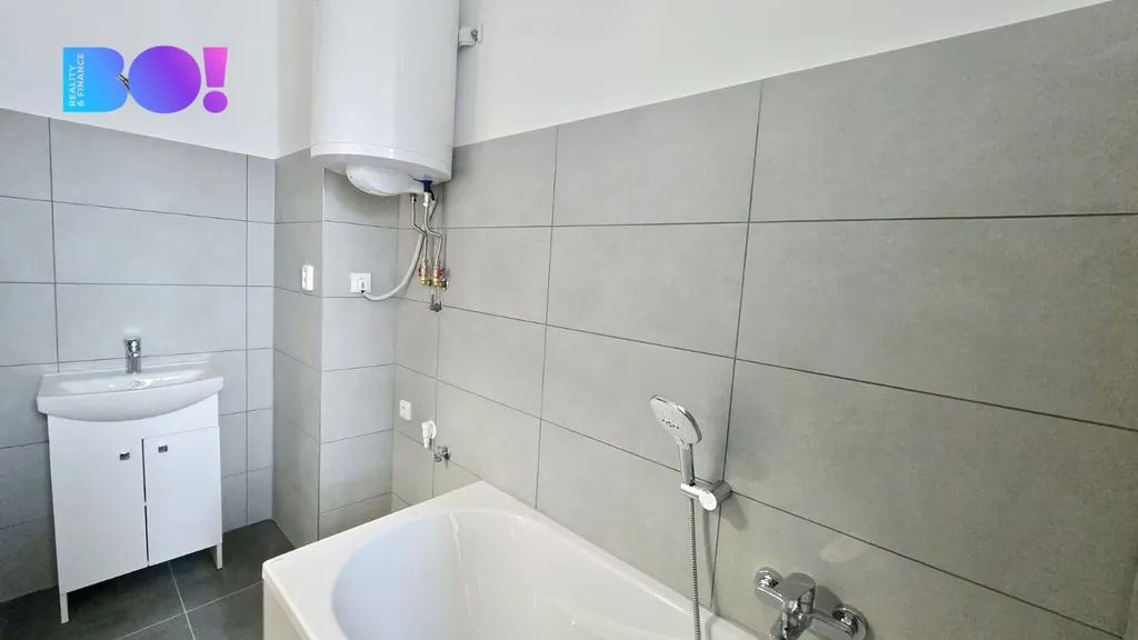 Dispozičně byt nabízí obývací pokoj s kuchyňskou linkou, který poskytuje dostatek prostoru pro pohodlné bydlení. Součástí bytu je koupelna s vanou a toaletou.