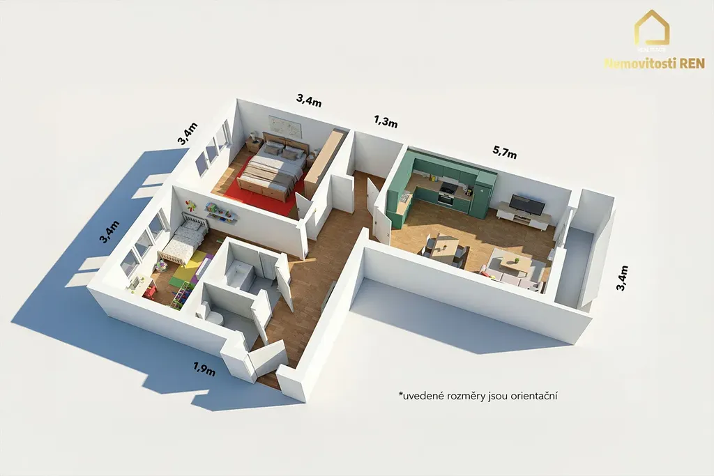 Nemovitost prošla zdařilou celkovou modernizací a je připravena k okamžitému nastěhování. Dominantou interiéru je nová kuchyňská linka v moderní zelené barvě, vybavená kvalitními spotřebiči Bosch – myčka, trouba a indukční varná deska, dále lednice, odsavač par. V celém bytě jsou položeny plovoucí podlahy, koupelna je vybavena praktickým sprchovým koutem a WC je oddělené. Velkou výhodou je také samostatná komora, která nabízí dostatek prostoru pro pračku, sušičku i další věci.