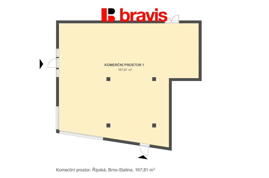 Nájemce má možnosti přizpůsobit si dělící konstrukce a příčky uvnitř jednotky dle svých potřeb.