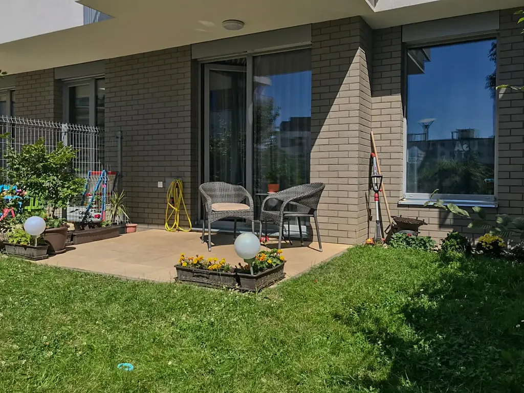 Ve výhradním zastoupení vlastníka nabízíme k pronájmu světlý a velmi dobře udržovaný byt 2+kk s předzahrádkou, umístěný v přízemí moderního nízkoenergetického domu z roku 2016 v projektu JRD Park Hloubětín.