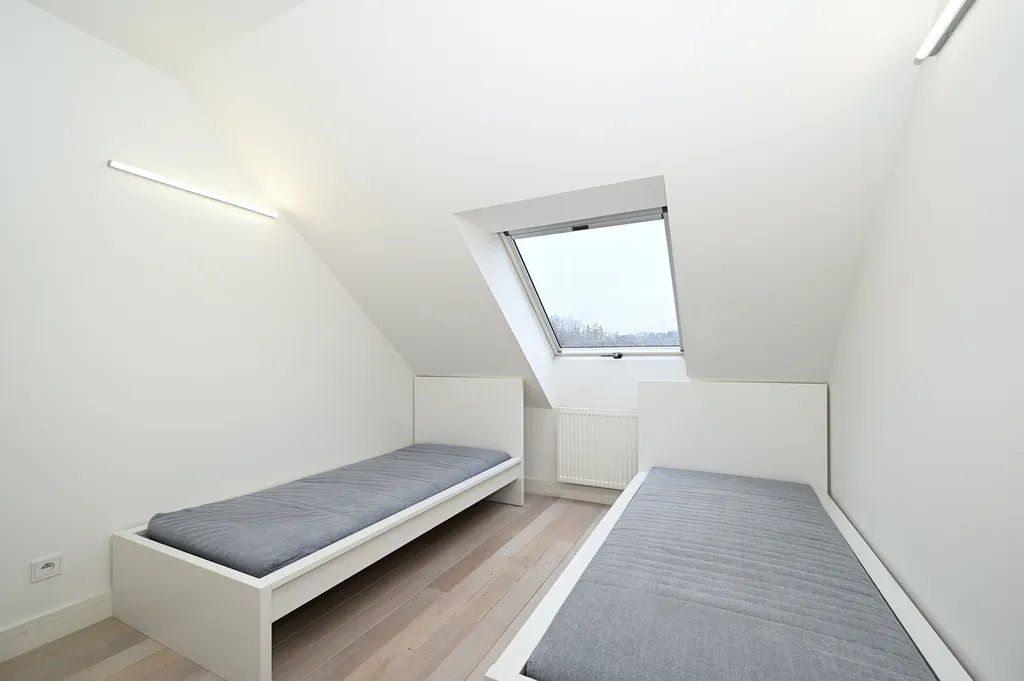 V horním patře bytu se nachází další dvě ložnice a koupelna se sprchovým koutem. Celkově tak byt disponuje čtyřmi ložnicemi, což z něj činí ideální volbu pro větší rodinu nebo pro ty, kteří pracují z domova a chtějí některý pokoj využít jako kancelář.