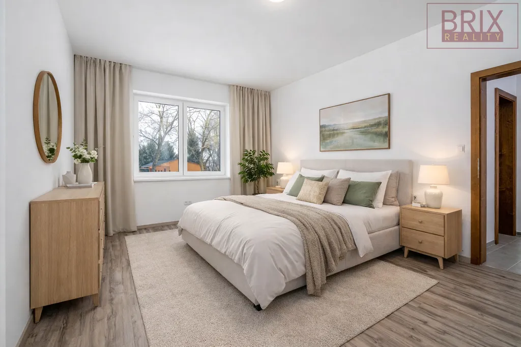 Nabízíme k prodeji krásnou novostavbu rodinného domu v Keblově o 125 m2 a dispozici 4+kk. Dům Vás jistě zaujme velkým obývacím pokojem s kuchyňským koutem a jídelnou, kde si budete užívat rodinný život a pohodu s přáteli. Domácí atmosféru tu jistě navodí i krbová kamna. Z obývacího pokoje je přímý vstup na terasu, kde budete moci trávit dlouhé letní večery. Terasa není zahrnuta v projektu domu. Také Vás zde jistě zaujme velká ložnice a dva dětské pokoje. V koupelně najdete vanu i sprchový kout, umyvadlo a toaletu. Druhá toaleta je samostatně. Dům je vytápěný podlahovým vytápěním pomocí tepelného čerpadla, takže už Vám jistě nebude zima od nohou. Dům má tepelně izolační trojskla, přípravu pro zabezpečovací systém s pohybovými čidly a také přípravu na venkovní kamery. Tepelné čerpadlo může být ovládané přes aplikaci. Voda je veřejná, kanalizace je svedena do vlastní čističky. Pozemek má celkem 957 m2, takže místa tu budete mít opravdu dost. Je zde také počítáno se dvěma parkovacími stáními. V širším okolí najdete veškerou občanskou vybavenost, na nájezdu na D1 jste jen za 7 minut. Do přírody, za relaxem i sportem budete moci chodit do nedalekých místních lesů a nebo třeba k vodní nádrži Švihov. Nenechte si utéct tuto nabídku a přijďte se podívat na prohlídku.