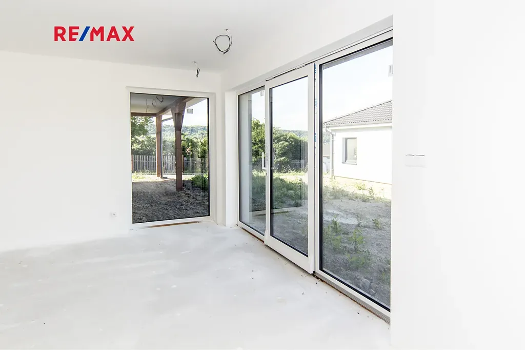 Hledáte svůj nový domov? Máme pro Vás novostavbu bungalovu se skvělou dostupností Prahy! Nabízíme ekonomicky úspornou stavbu jednopodlažního domu v rámci developerského projektu (4 zděné domy a 2 levnější dřevostavby s menším pozemkem) s užitnou plochou 121 m2 na pozemku o ploše 1036 m2, navrženou tak, aby splňovala současné nároky na moderní domov. Tak je koncipován i interiér bugalovu s dipozicí 4+kk. Za vchodem do budovy se nachází technická místnost, dále jsou umístěny 3 ložnice, 2 z nich mají vlastní šatnu, z chodby je dále vstup do koupelny s WC a do dalšího, samostatného WC. V čele chodby vstoupíme do prostorného, světlého obývacího pokoje s přípravou na kuchyňský kout. Zde jsou francouzská okna do zahrady.