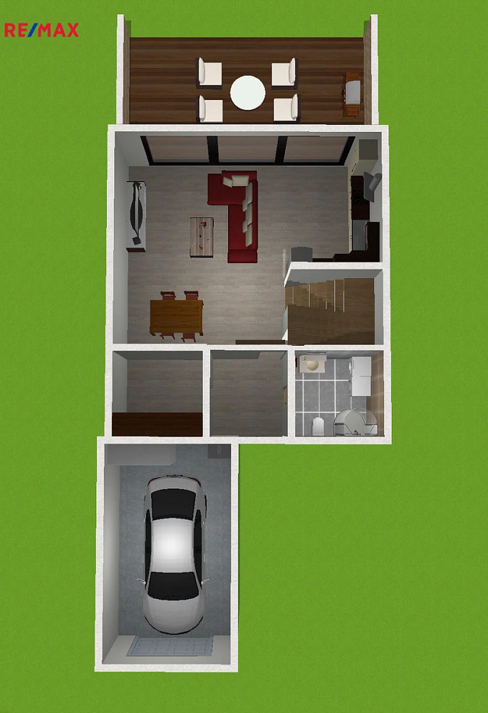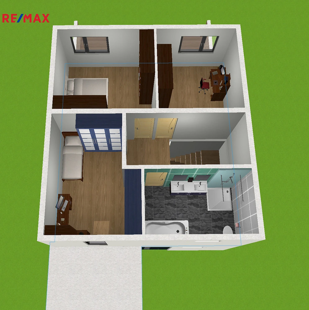 Dům D -podlahová plocha 125 m², užitná plocha 165 m² (včetně terasy a garáže), zahrada 463 m²