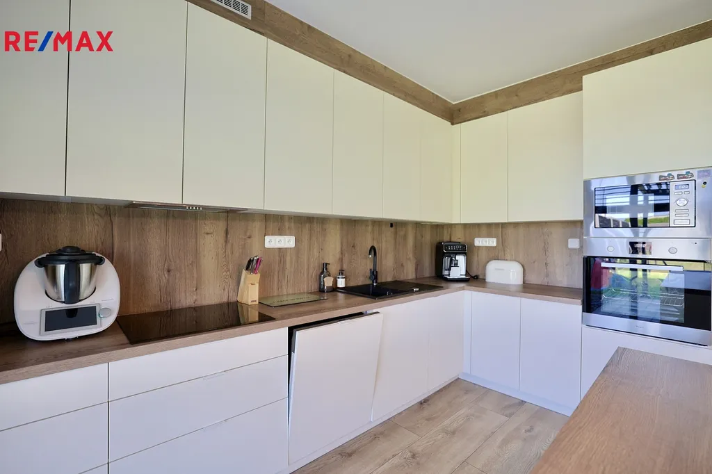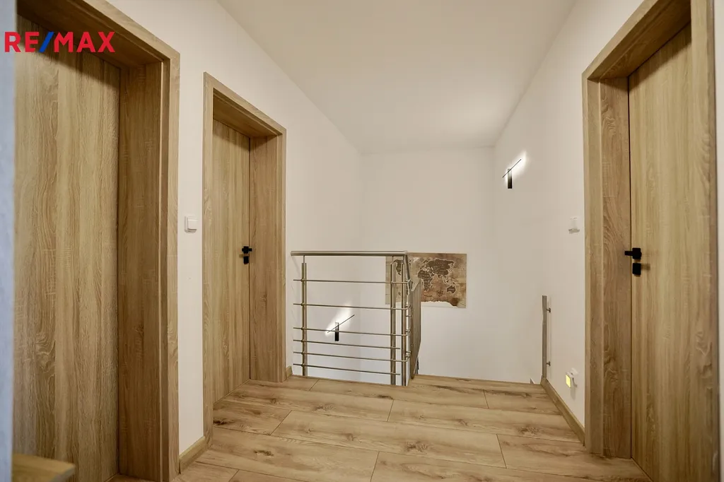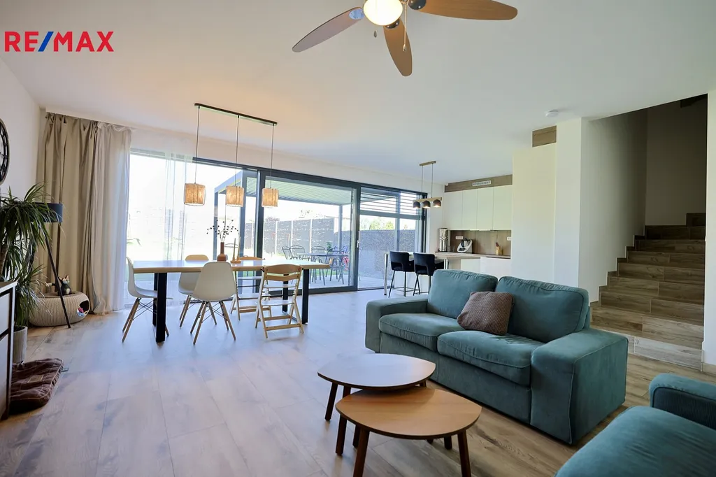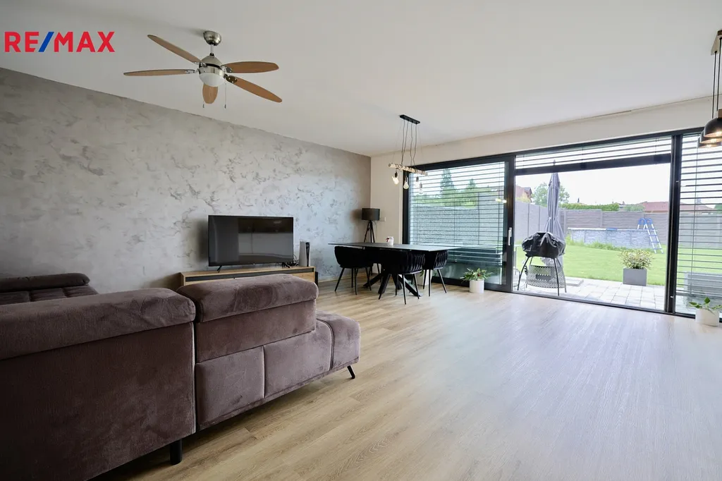 Vytápění tepelným čerpadlem, příprava pro fotovoltaiku, podlahové vytápění, hliníková okna a venkovní žaluzie.