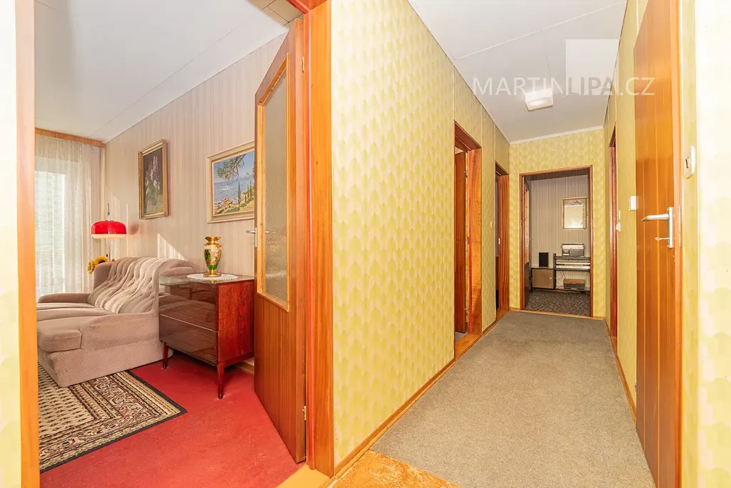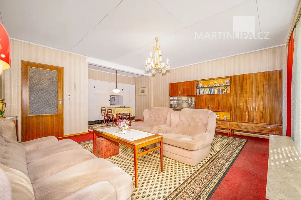 Obytná část domu má užitnou plochu 104 m² a funkční, přehlednou dispozici. Najdete zde tři ložnice, obývací pokoj a samostatnou, plně vybavenou sektorovou kuchyň, která je s obývacím pokojem propojena typickým servírovacím okénkem. Z obývacího pokoje je přímý vstup na lodžii. Všechna okna byla v roce 2006 vyměněna za plastová dvojskla.