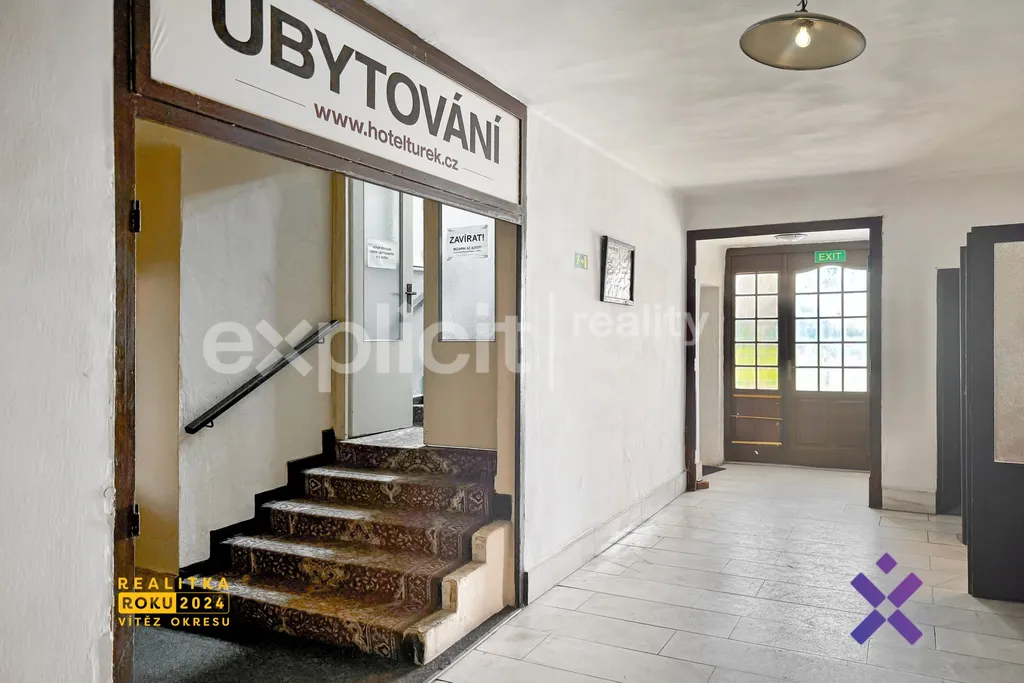 Budova byla v minulosti dlouhodobě využívána jako hotel s restaurací, kavárnou a společenským zázemím. V posledních letech sloužila výhradně jako ubytovací zařízení. Jedná se o masivní stavbu z pálených cihel a tvárnic s velmi silnými obvodovými zdmi, které zajišťují výborné statické vlastnosti a představují ideální základ pro kompletní rekonstrukci bez nutnosti zásadních konstrukčních zásahů.