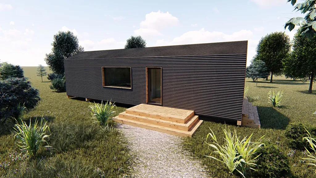 V přímém zastoupení českého výrobce nízkoenergetických dřevostaveb, nabízíme k prodeji stavebnici domu SIP 58, dispozice 3+kk, se zastavěnou plochou 58 m2.