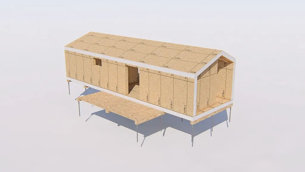 vnější stěny jsou tvořeny dvěma deskami OSB