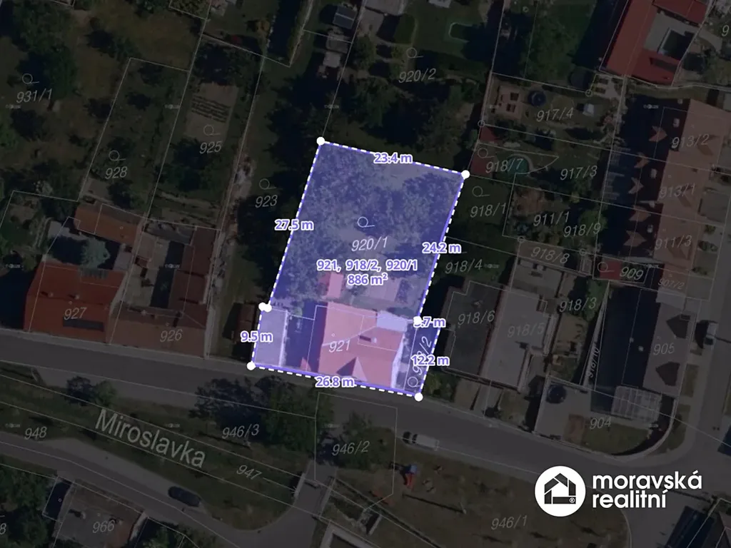 Celková výměra pozemků činí 886 m.