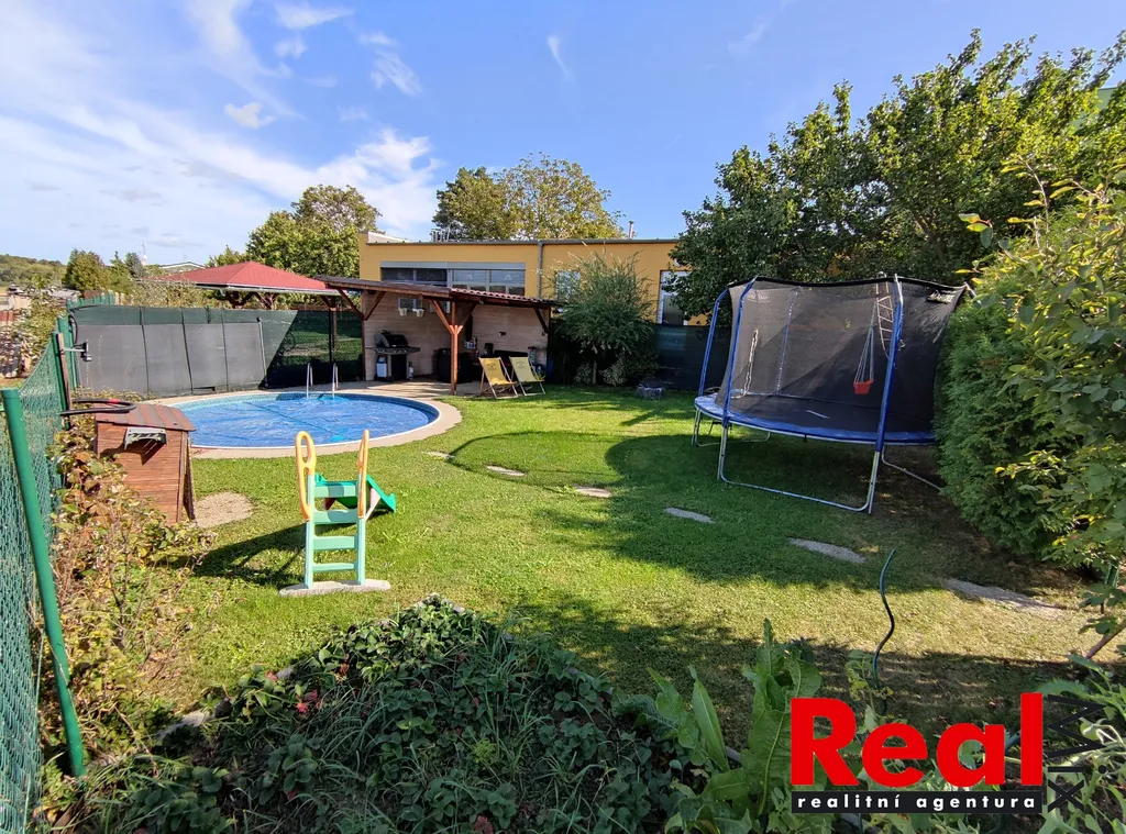 Dispozice bytu 4+kk, výměry jsou orientační: CP byt 93m2 + terasa 9m2 + sklep 21m2 v 1.PP domu + šopa/dílna 16m2 na pozemku + vlastní zahrada 149m2 s bazénem, pergolou, houpačkou a posezením vč. části zahrady určené k osázení (rajčata, cukety, bylinky atp.). Obývací pokoj s kuchyňským koutem a terasou, 3x pokoj se samostatnými vstupy, koupelna s vanou, masážním sprchovým koutem s vestavěnou hudbou a WC. K bytu dále patří prostor před vstupními dveřmi (na chodbě), kde je prostorná vestavěná skříň.