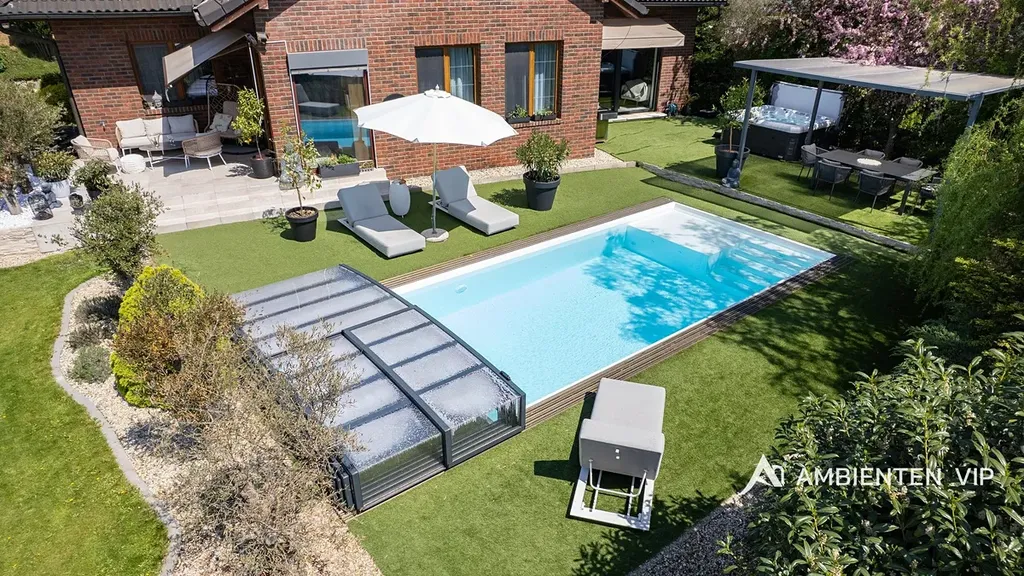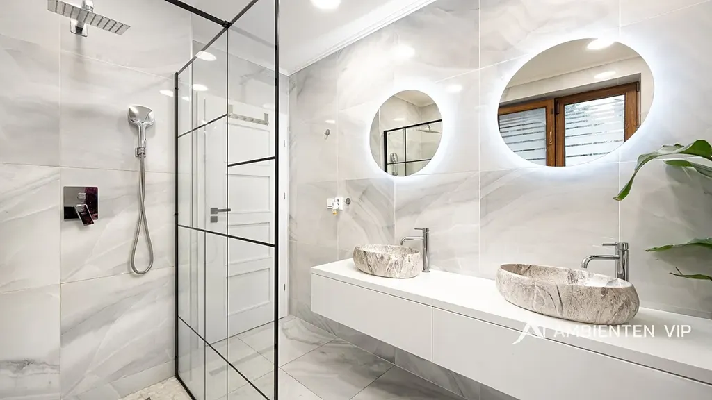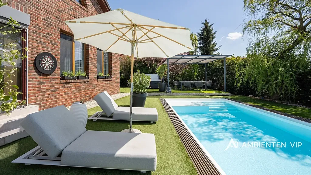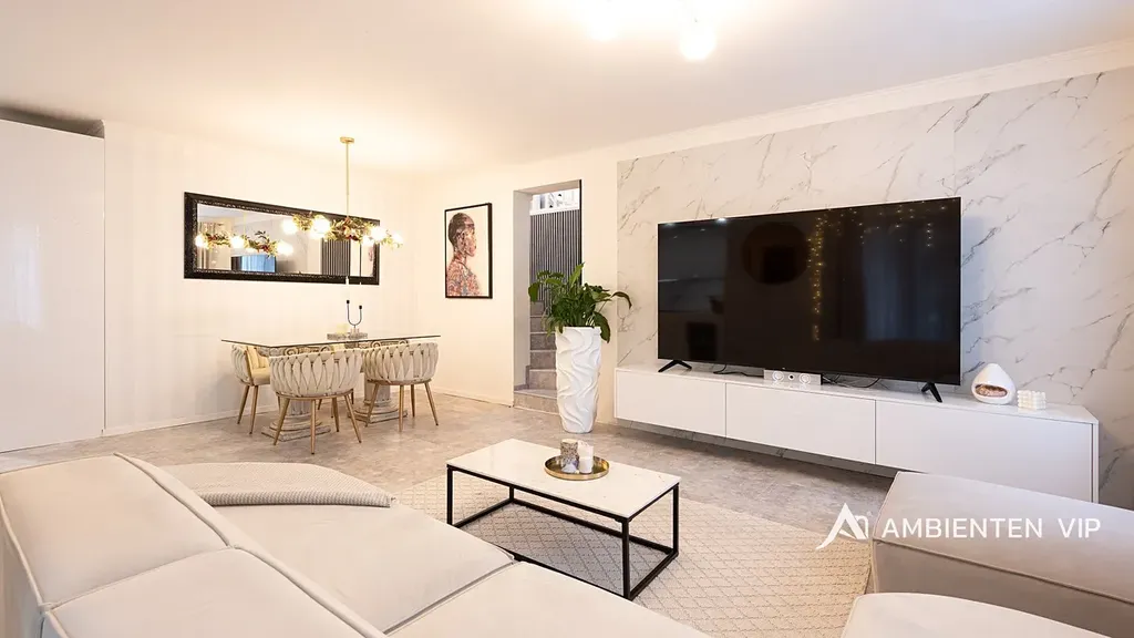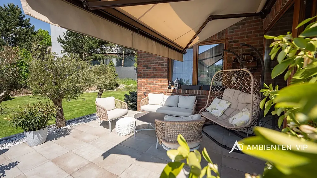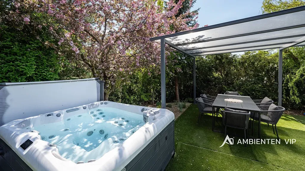 Tato vkusně a moderně zařízená vilka po rekonstrukci vás okouzlí nejen interiérem, ale i prostornou zahradou skýtající různé formy využití. Vstup do domu je přes prosklené zádveří, ze kterého vstoupíte do vzdušné světlé předsíně, která je obložená moderními panely s mramorovou texturou s velkorysým úložným prostorem a vstupem do téměř všech místností domu. Po levé straně naleznete průchod do prostorné šatny s ostrůvkem, přes kterou se prochází do luxusní ložnice. Ta má přímý výstup k bazénu a vířivce. Dominantou ložnice je na zakázku vyrobené dvojlůžko, samostatně stojící vana, umyvadlo a projektor s plátnem. Přímo z postele ložnice máte nádherný pohled do okrasné zahrady. Plátno projektoru lze využít i jako roletu. Otevřená dispozice obývacího pokoje, kuchyně a jídelny je příjemným prostor pro vaši rodinu. Kuchyňská linka je od firmy Mikyska. V rámci obývacího pokoje můžete spočinout na značkové sedačce, využít jídelní stůl s designovými židlemi či připravit pro rodinu výborné menu za pomoci moderních spotřebičů, většinou značky Miele. Za zmínku stojí varná část kuchyně nabízející Combi set pro pánev Wok a přípravu čerstvých paniny. Při přípravě pokrmů, stejně jako při relaxaci na sedačce můžete pozorovat život na zahradě, která obklopuje celý dům. Z obývací části je vstup na prostornou terasu až ke krytému bazénu se slanou vodou a protiproudem. Odpočinkovou zónu vkusně doplňuje vzrostlá středomořská vegetace v elegantních květináčích. Pokud se vydáte z předsíně vpravo, zavítáte do jednoho z dětských pokojů. V budoucnosti lze i tento pokoj propojit s terasou a přímým vstupem na zahradu. Vedle dětského pokoje se nachází technická místnost s pračkou a sušičkou a dále vstup do koupelny s toaletou a sprchovým koutem a dvěma umyvadly. Vytápění domu je přes plynový kotel Baxi. V přízemí domu je podlahové vytápění. Ve druhém patře domu se nachází dětský pokoj, který majitelka vkusně vyzdobila dětskou tapetou a vytvořila pohádkové království pro vaše děti. Celá zahrada je oplocená dřevěným plotem. Nabídne vám prostor, jak pro váš odpočinek, tak lze i část zahrady využít jako druhé stavební místo. Na pozemku máte soukromí, jelikož je zeleň v zahradě poměrně vzrostlá. Na zahradě se nachází domek na nářadí a herní plocha pro děti. Zdivo domu je cihla s obkladem Klinker. Okna jsou plastová s izolačním dvojsklem. Rodinný dům prošel nákladnou rekonstrukcí, která se uskutečnila v roce 2021 a 2024.