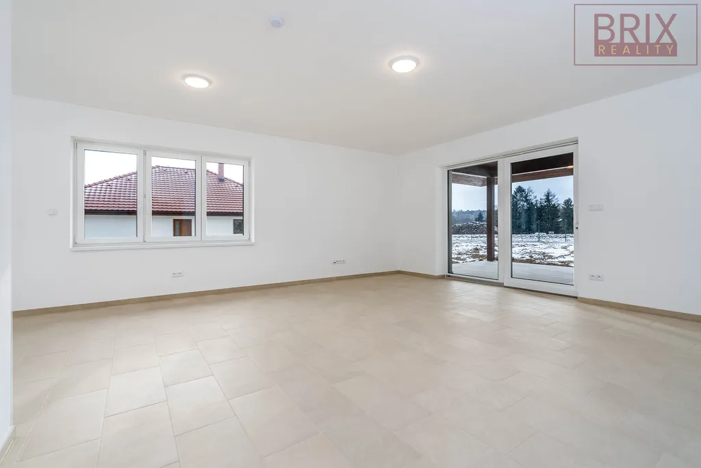 Nabízíme k prodeji krásnou novostavbu rodinného domu v Keblově o 124 m2 a dispozici 4+kk. Dům Vás jistě zaujme velkým obývacím pokojem s kuchyňským koutem a jídelnou, kde si budete užívat rodinný život a pohodu s přáteli. Domácí atmosféru tu jistě navodí i krbová kamna. Z obývacího pokoje je přímý vstup na zastřešenou terasu o 19 m2, kde budete moci trávit dlouhé letní večery. Také Vás zde jistě zaujme velká ložnice a dva dětské pokoje. V koupelně najdete vanu i sprchový kout a umyvadlo. Toaleta je samostatně. Druhou toaletu pak najdete v technické místnosti hned u vstupu. Dům je vytápěný podlahovým vytápěním pomocí tepelného čerpadla, takže už Vám jistě nebude zima od nohou. Dům má tepelně izolační trojskla, přípravu pro zabezpečovací systém s pohybovými čidly a také přípravu na venkovní kamery. Tepelné čerpadlo může být ovládané přes aplikaci. Voda je veřejná, kanalizace je svedena do vlastní čističky. Pozemek má celkem 957 m2, takže místa tu budete mít opravdu dost. Je zde také počítáno se dvěma parkovacími stáními. Součástí ceny je také kuchyňská linka na míru, oplocení pozemku a zámková dlažba před domem a na parkovacích místech. V širším okolí najdete veškerou občanskou vybavenost, na nájezdu na D1 jste jen za 7 minut. Do přírody, za relaxem i sportem budete moci chodit do nedalekých místních lesů a nebo třeba k vodní nádrži Švihov. Nenechte si utéct tuto nabídku a přijďte se podívat na prohlídku.