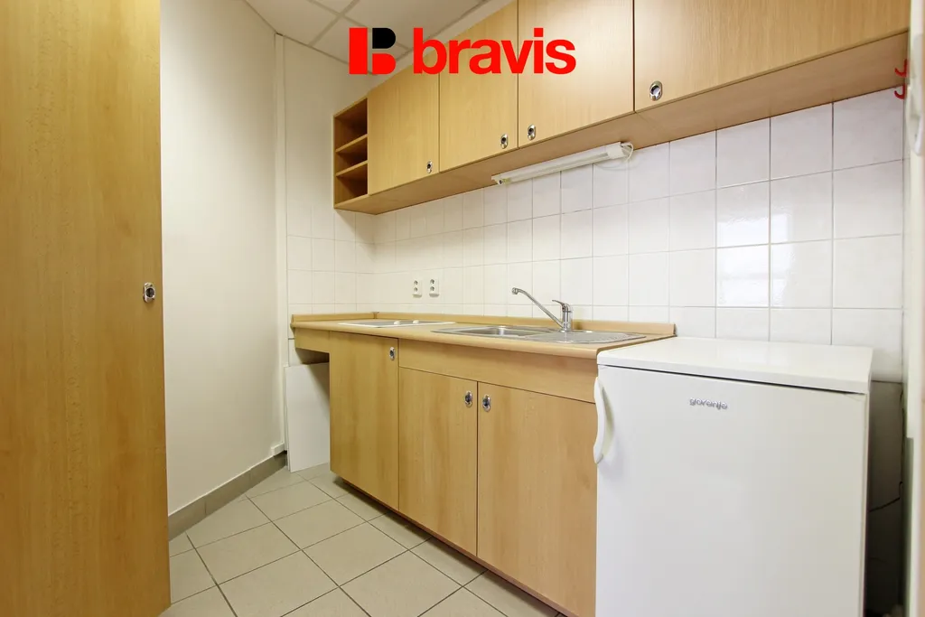 Dispozice 2+1 nabízí neprůchozí místnosti, což poskytuje dostatek soukromí a prostoru pro jednotlivé pracovní týmy nebo oddělení. V kanceláři se také nachází koupelna se sprchovým koutem a praktická kuchyňka s lednicí a varnou deskou, což přidává na komfortu a funkčnosti prostoru.