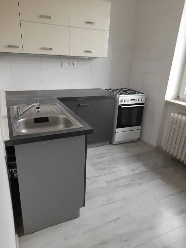 Byt je částečně vybaven kuchyňskou linkou s kombinovaným sporákem. Koupelna je vybavena vanou, umyvadlem se skříňkou, toaleta je oddělená.