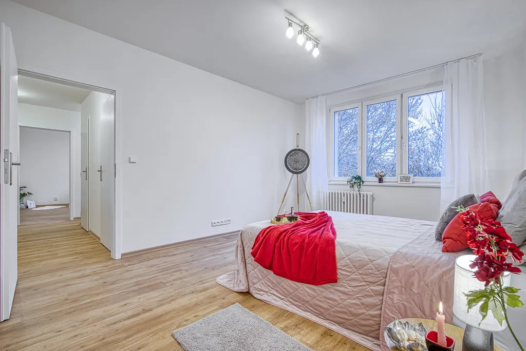Nabízíme k pronájmu krásný byt 2+1, po kompletní rekonstrukci. Byt se nachází ve 4. nadzemním podlaží panelového domu a disponuje novou kuchyňskou linkou se sklokeramickou varnou deskou, elektrickou pečící troubou, myčkou a digestoří. V koupelně se nachází sprchový kout, umyvadlo se skříňkou a skříňka se zrcadlem. Toaleta je samostatně. Součástí pronájmu je i sklepní kóje. Byt není vybaven nábytkem. Nájemné zde činí 12 000,- Kč, záloha na služby 2 000,- Kč pro 1 osobu + 500,- Kč každá další osoba. Vratná kauce je 24 000,- Kč. Při rezervaci se platí provize realitní kanceláři ve výši 14 500,- Kč. Elektřina se přepisuje na nájemce. Byt je volný ihned. Jako podmínka pro výběr zájemce o bydlení je zaslání motivačního dopisu. V případě zájmu o prohlídku či více informací neváhejte kontaktovat makléře.
