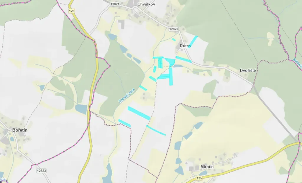 Celková výměra k prodeji: 77 941 m² (cca 7,8 ha)