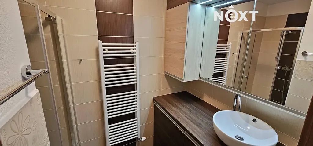 Dispozice: Obývací pokoj spojený s kuchyní, ložnice, chodba, moderní koupelna se sprchovým koutem , umyvadlem a topným žebříčkem, WC, balkon cca 10,50 m2, sklep cca 5,6 m2.