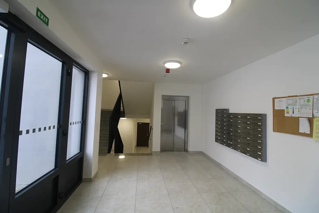 Byt je v osobním vlastnictví a nachází se v moderním cihlovém domě s výtahem.
