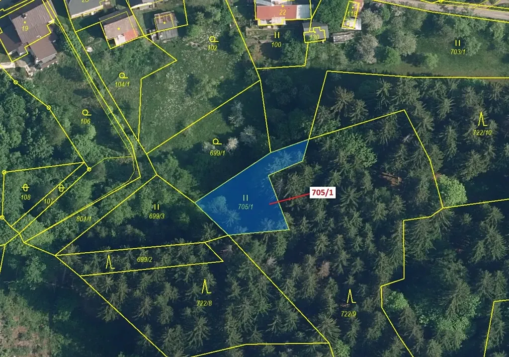 Trvalý travní porost o výměře 438 m2, parcelní číslo 705/1, podíl 1/1, katastrální území Lhotka u Zlaté Olešnice, obec Zlatá Olešnice, obec s rozšířenou působností Tanvald, okres Jablonec nad Nisou, Liberecký kraj.