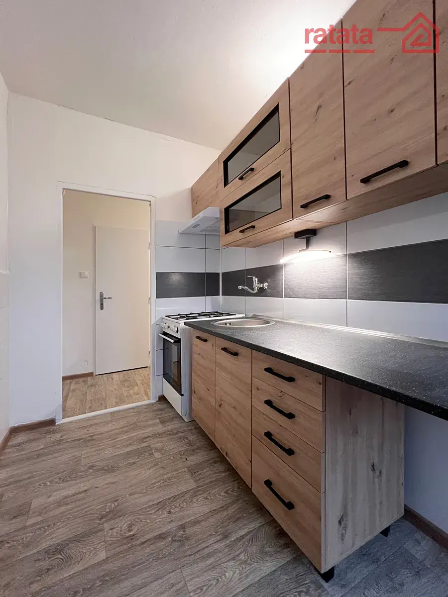 Je zde kuchyňská linka, plynový sporák, vana s umyvadlem a WC. Na podlahách je položeno lino a dlažba. Byt je volný k nastěhování Ihned.