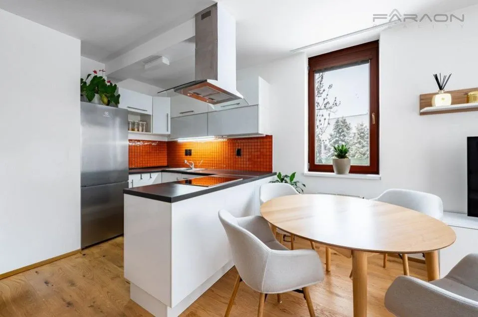 Vybavení bytu zahrnuje masivní dřevěné podlahy, dlažbu v koupelně a na chodbě, kuchyňskou linku se spotřebiči (indukční varná deska, kombinovaná trouba, myčka), pračku, sušičku, TV, sklep a kočárkárnu.