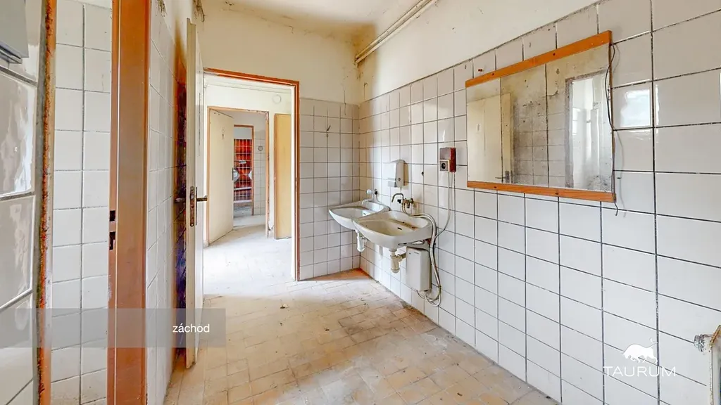 > 1. NP – 254 m² užitné plochy (v minulosti využíváno jako hospoda, sál s pódiem, toalety pro muže/ženy)